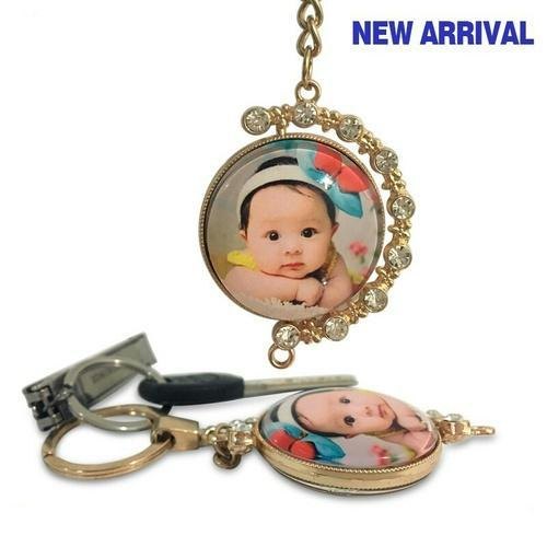 LLAVERO METÁLICO NEGRO CON BORDE PIEDRERÍA ''DONNA'' SUBLIMABLE