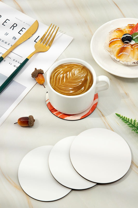PORTAVASOS BLANCO REDONDO EN CUERO PU SUBLIMABLE