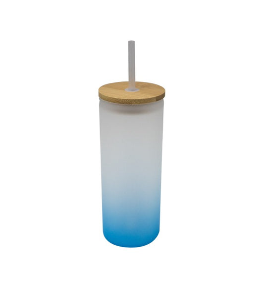 VASO DE VIDRIO GLASEADO TAPA BAMBÚ CON CARRIZO 690ml SUBLIMABLE