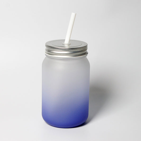 MASON JAR GLASEADO CON ASA Y BASE CELESTE