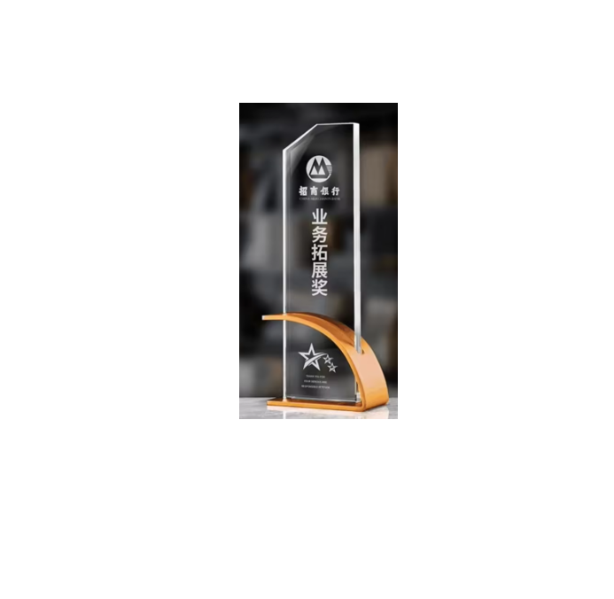 TROFEO VIDRIO RECONOCIMIENTO ''GRAND AVANTI'' 25*9.5 cm BASE METAL DORADO SUBLIMABLE